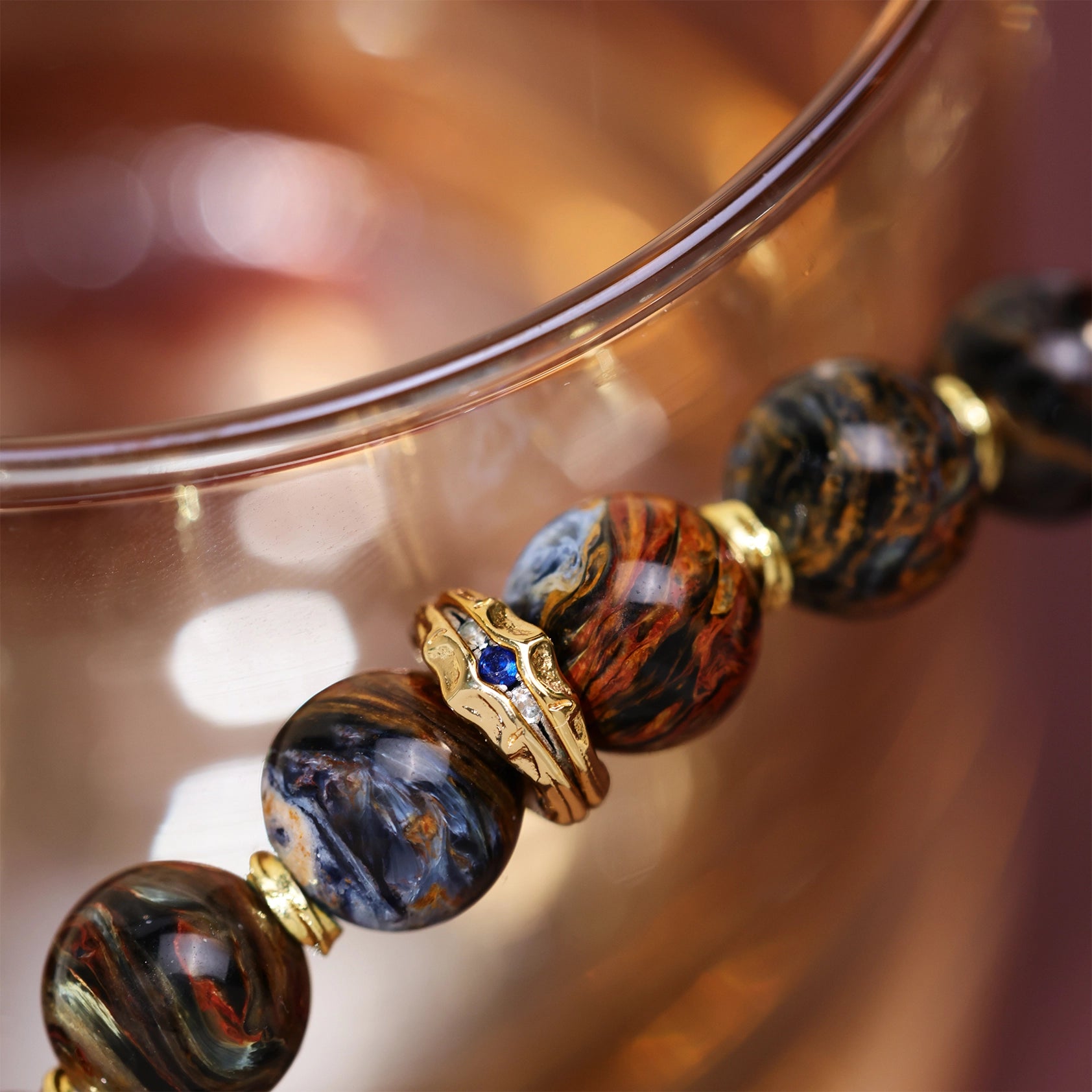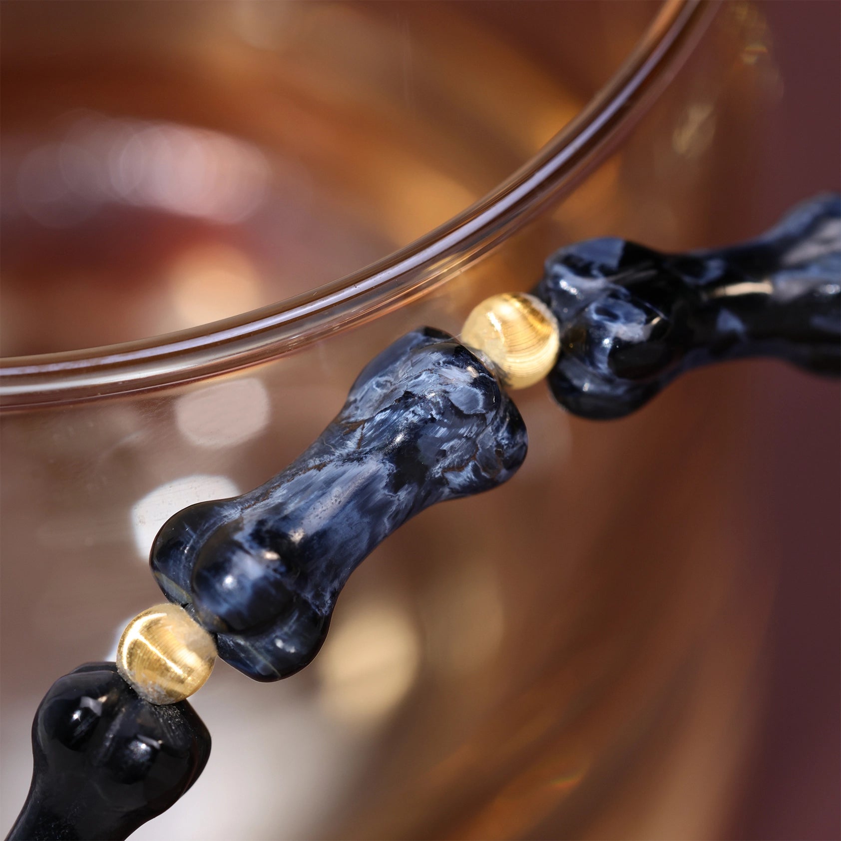 Each bracelet is carefully polished from natural blue Pietersite, showing a storm-like flowing texture and deep blue tones. Pietersite, also known as the "Storm Stone", symbolizes firmness, clarity and inner strength. Due to its natural properties, each bracelet is unique, showing the artistic beauty given by nature.