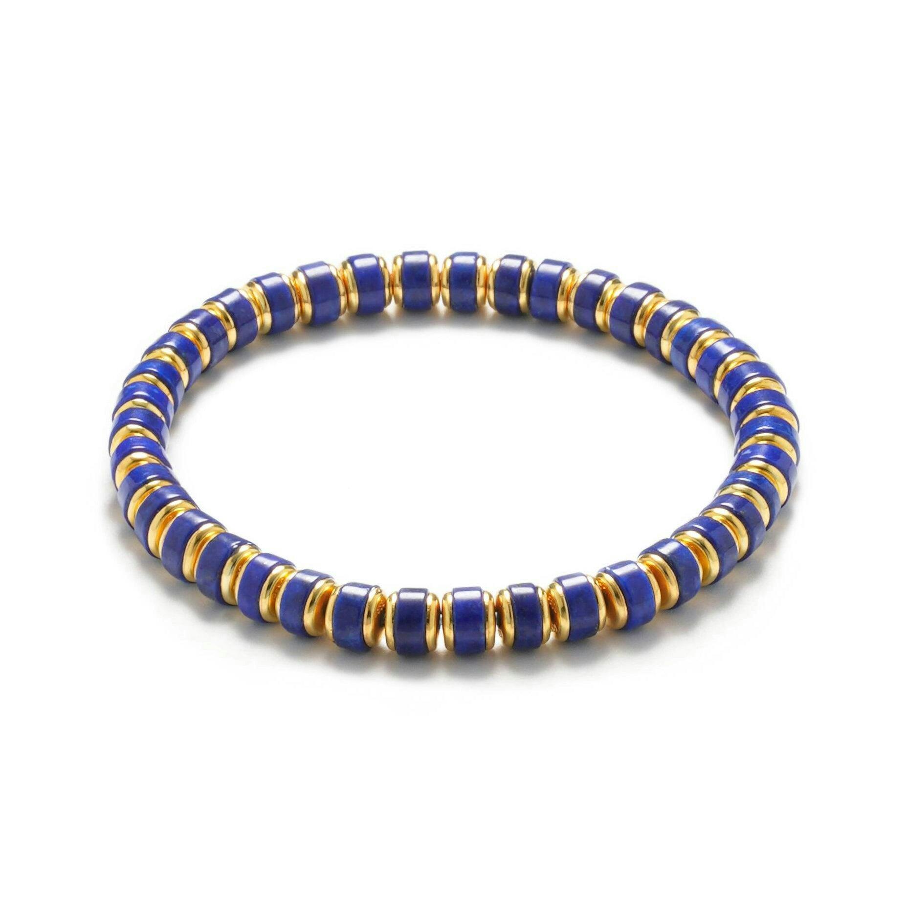 Discover minimalist elegance with our Gold Lapis Lazuli Bracelet. The classic blue and gold design, featuring comfortable rondelle beads on a stretch cord, is perfect for daily wear or stacking.