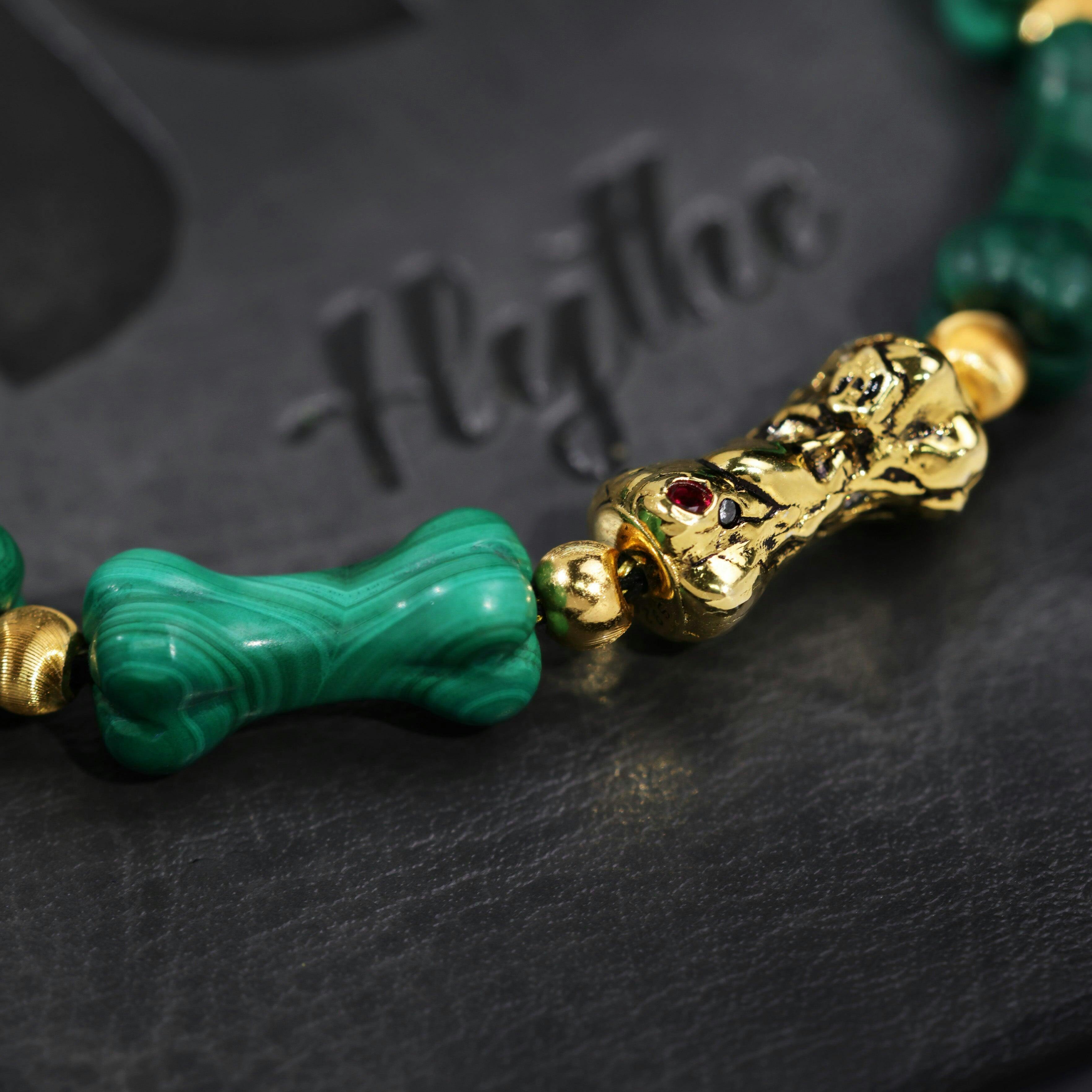 Unleash your inner rebel with our iconic Malachite bone bracelet. This piece redefines streetwear luxury jewelry, transforming a bold, edgy symbol into a work of art. Each bead is meticulously carved from genuine green malachite, creating a unique carved stone bracelet that commands attention and expresses a powerful, alternative style.